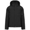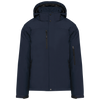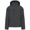 95% polyester / 5% elasthan. 3-laagse ademende stof 3000 g/m²/24 u en waterdicht 8000 mm. Buitenkant: 95% polyester / 5% elasthan. Tussenlaag: ademend membraan. Binnenlaag: microfleece. Gewatteerde voering van 100% polyester. Voorkant: 4 ritszakken (2 aan de zijkant, 1 op de mouw, 1 rechts op de borst). 2 binnenzakken met drukknoop. Afneembare capuchon met 3 gevoerde en gewatteerde panelen, regelbaar met stoppers. Met klittenband regelbare mouwuiteinden. 1 rits aan de linkerkant en 1 drukkersrits.